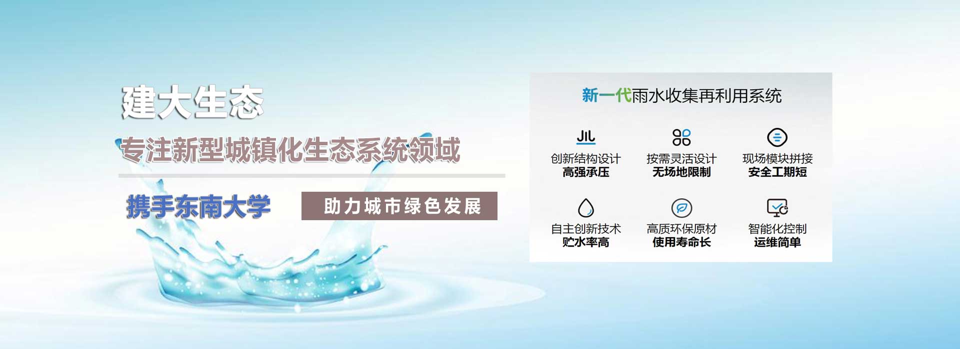 江蘇建大生態(tài)科技有限公司,是一家專注環(huán)保產(chǎn)業(yè)的高新科技企業(yè),主要業(yè)務(wù)范圍包含:海綿城市、雨水收集系統(tǒng)、PDS防護虹吸排水系統(tǒng)、純水處理設(shè)備、污水處理設(shè)備、一體化預(yù)制泵站、ALC加氣板等。公司研發(fā)團隊與”東南大學(xué)”合作多年,具備前瞻性產(chǎn)業(yè)以及產(chǎn)品的設(shè)計與開發(fā)能力。我公司一直以穩(wěn)定至優(yōu)的產(chǎn)品和良好的企業(yè)信譽,取得了廣大客戶的信任。公司所有產(chǎn)品均通過內(nèi)部質(zhì)量標準,強大的生產(chǎn)能力和高精的檢測手段,以客戶滿意為中心,不斷追求創(chuàng)新!